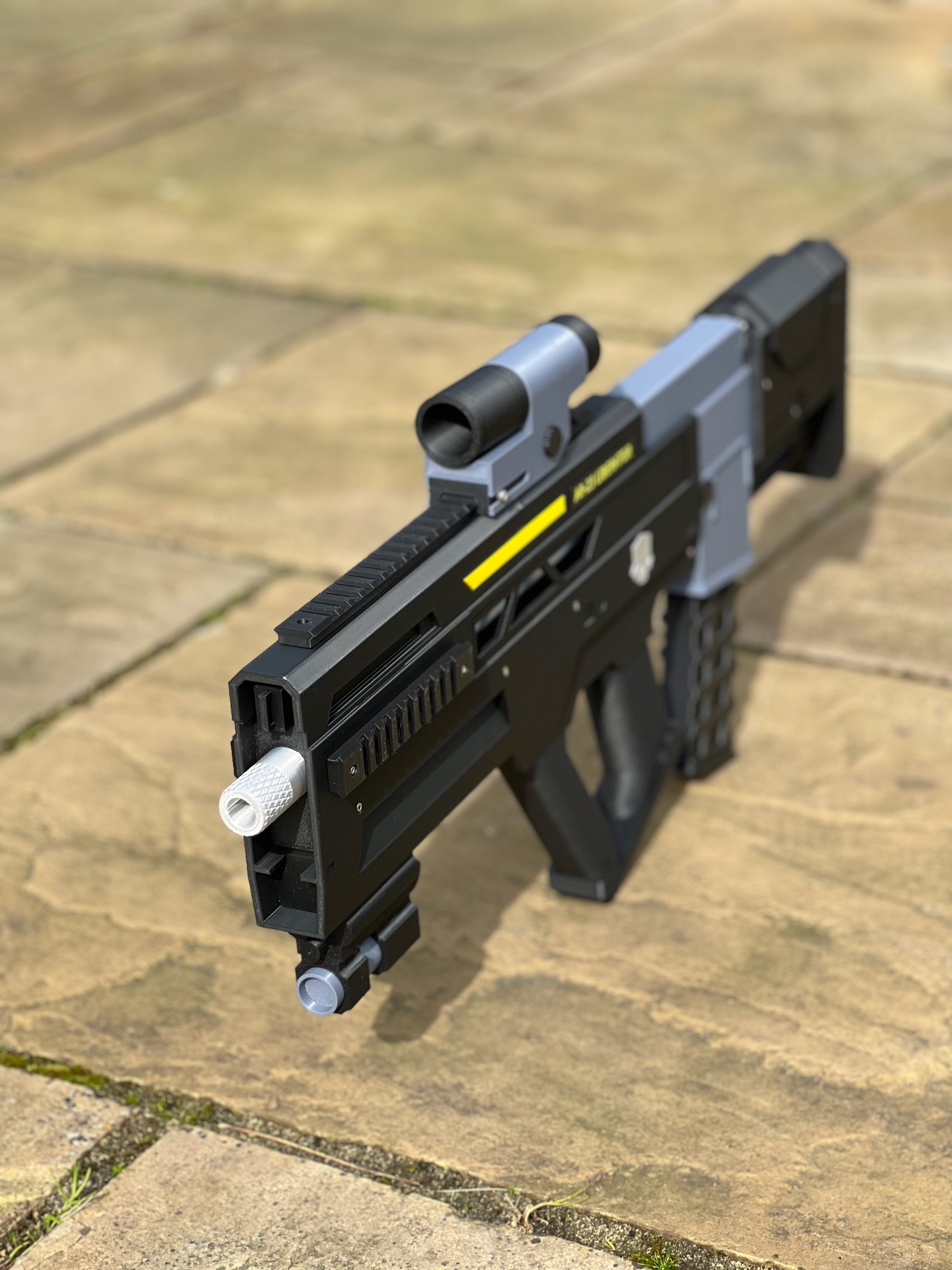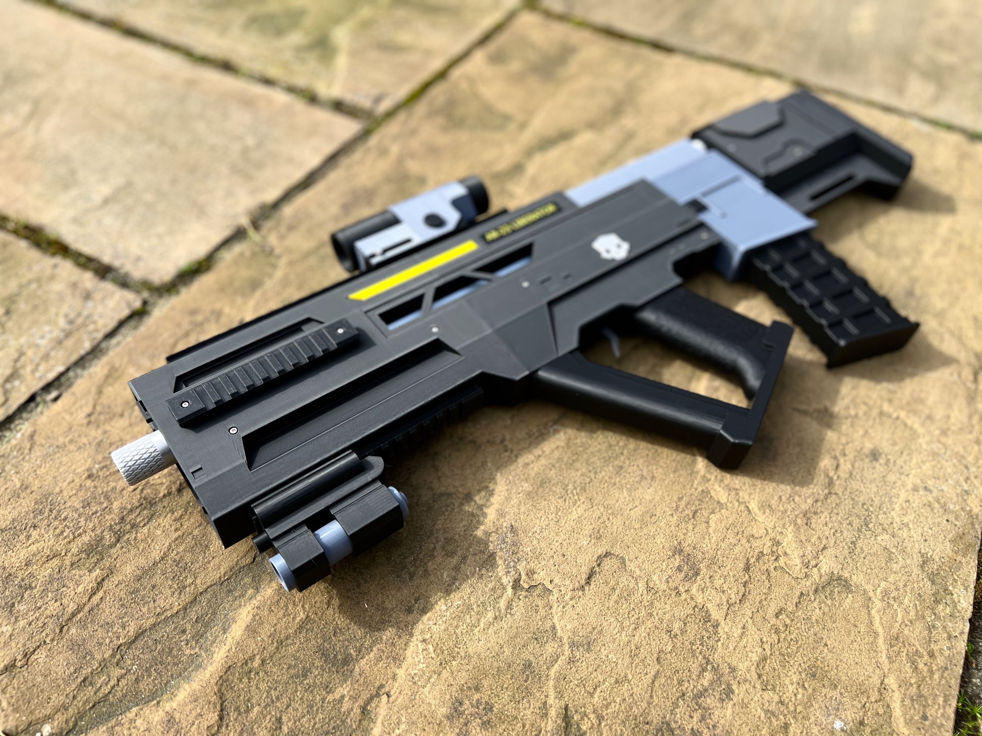 This is a multi-colour printed kit of the AR-23 from Helldivers 2. Unlike other listings what you see is what you get. The Liberator is printed in black, grey, silver, yellow and white so once assembled the AR-23 is ready, no need to sand and paint (although that is possible if you wish). All that is needed to assemble this is some superglue, locating pins and all parts will be provided.
