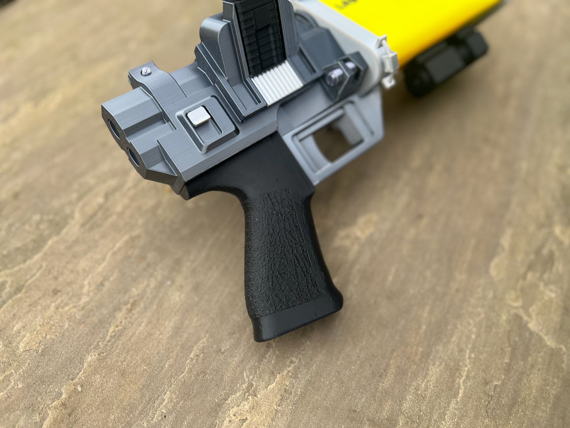 This is a multi-colour printed prop of the LAS-7 Dagger from Helldivers 2. What you see is what you get, everything is printed in black, grey, silver, yellow and white and is ready to use for cosplay or display.