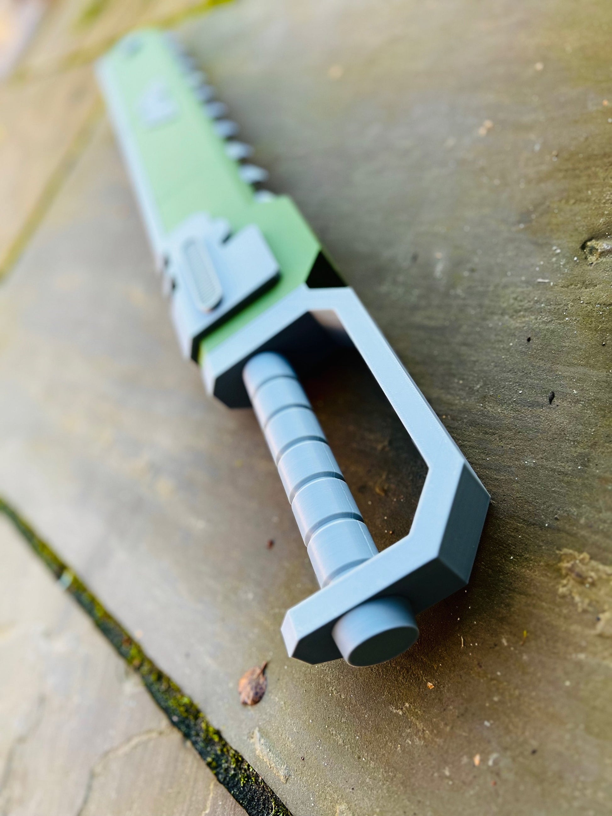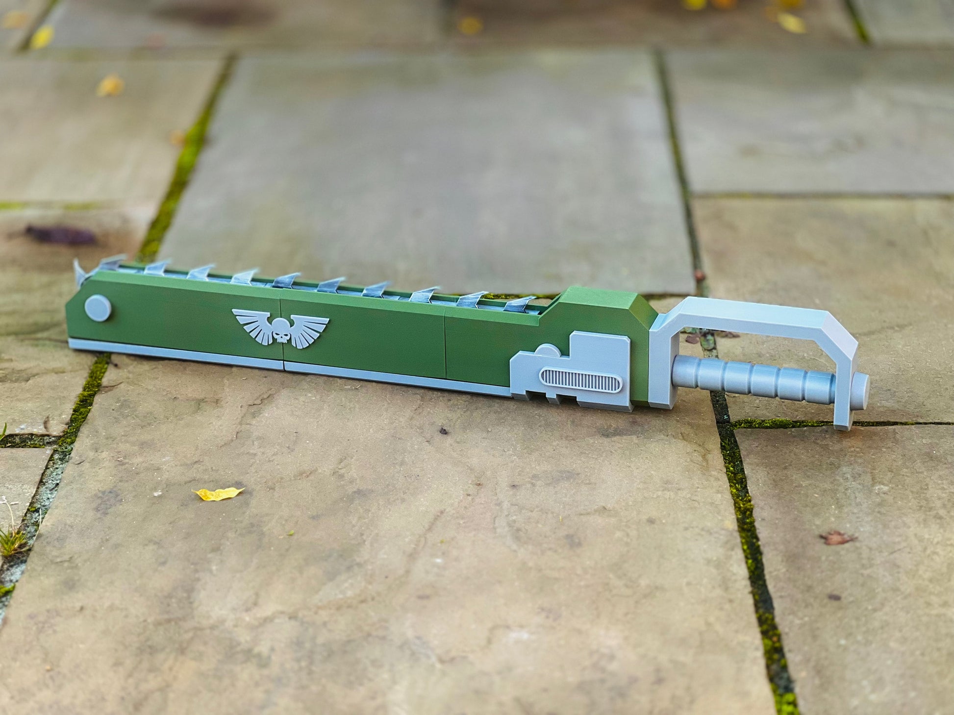 This is a 3D printed kit for you to build your own guardsman Chainsword. The item will be supplied printed in military green plastic ready for you to assemble.