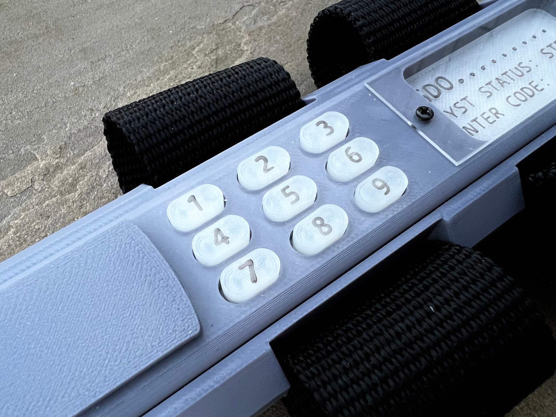 Finish off your SG1 cosplay with a G.D.O. Each GDO includes a 3D printed body with metal rails and 2 1.5” nylon straps with Velcro fastening. The screen message can be customised to whatever you would like, message us after your order with the text you would like.